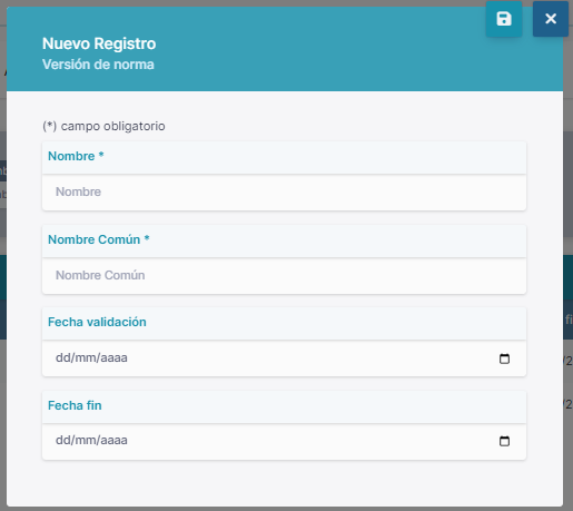 Como podemos observar además del nombre tambien será necesario un alias o nombre común para la norma como campo control para el correcto funcionamiento de la herramienta de importacion masiva de registros, creacion de auditorias, etc, asi como una fecha de validación o limite de uso de la norma si procede.